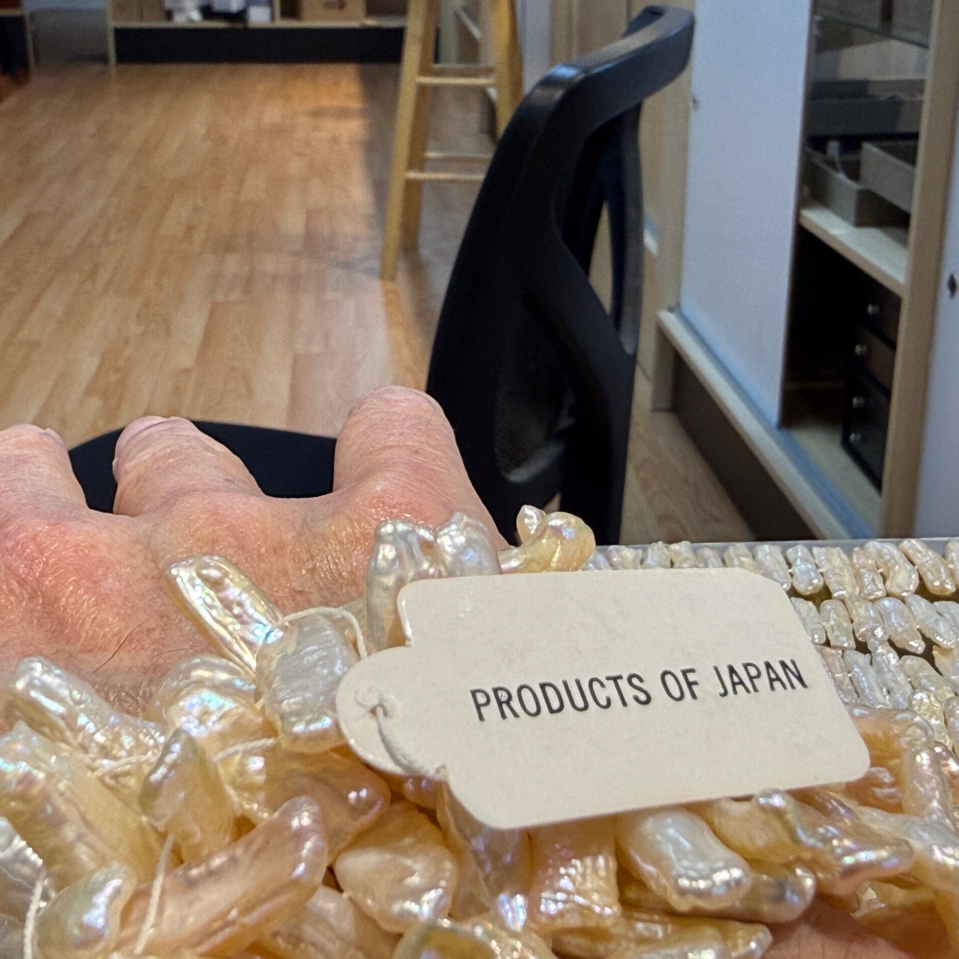 Japanese Biwa Pearls from the 80's. Center drilled 15" strands, cream color