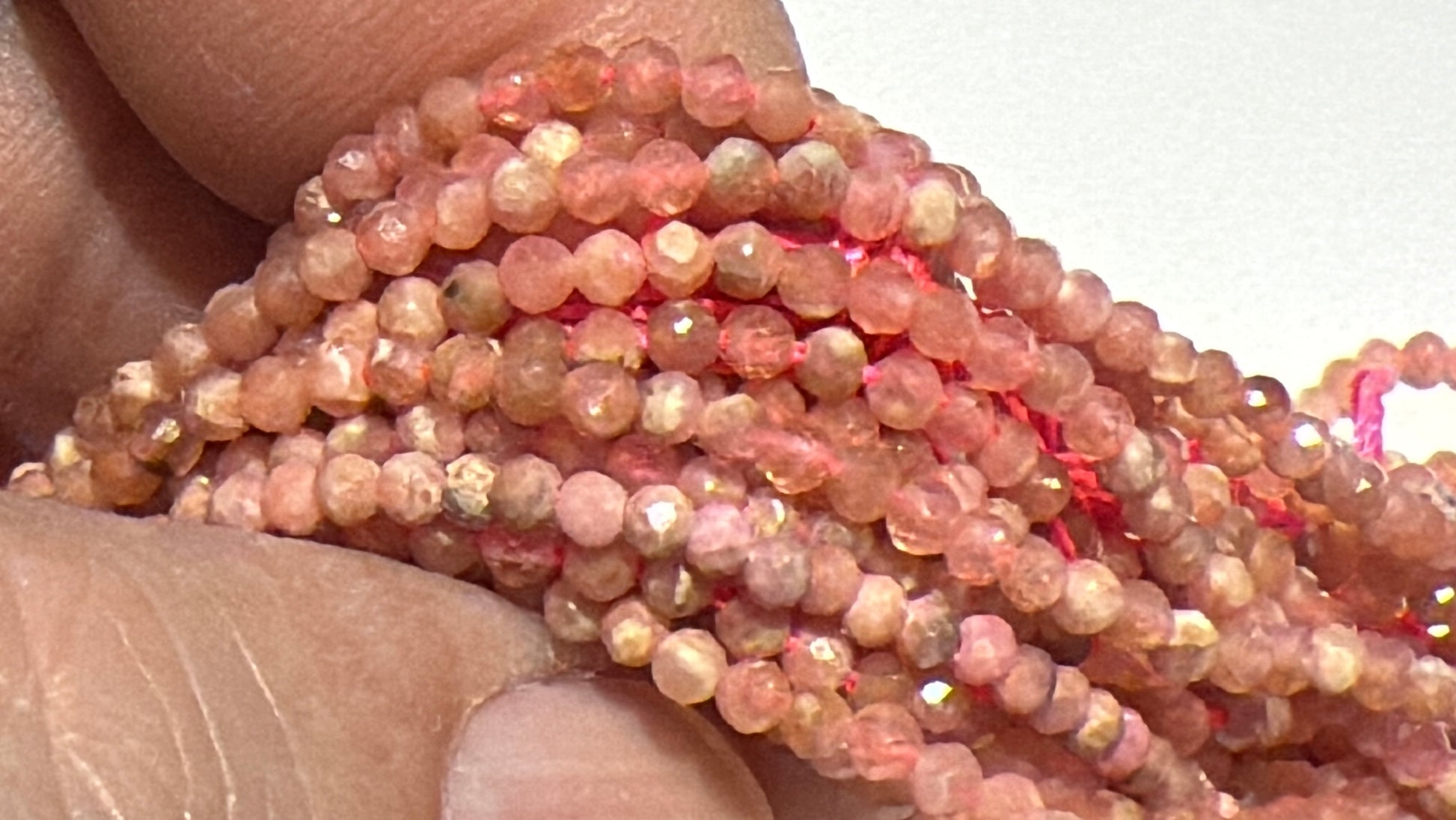 Rhodochrosite faceted round beads approx 2 mm 15" strands from Argentina!